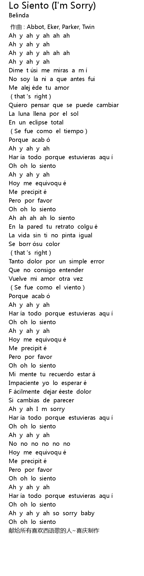 | [03:18.886] | 献给所有喜欢西语歌的人~喜庆制作 |