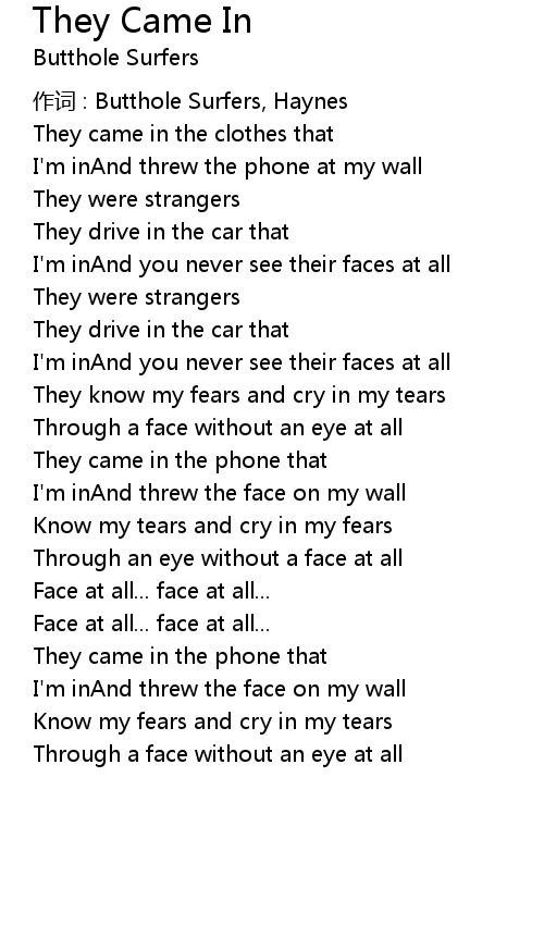| 作词 : Butthole Surfers, Haynes | |