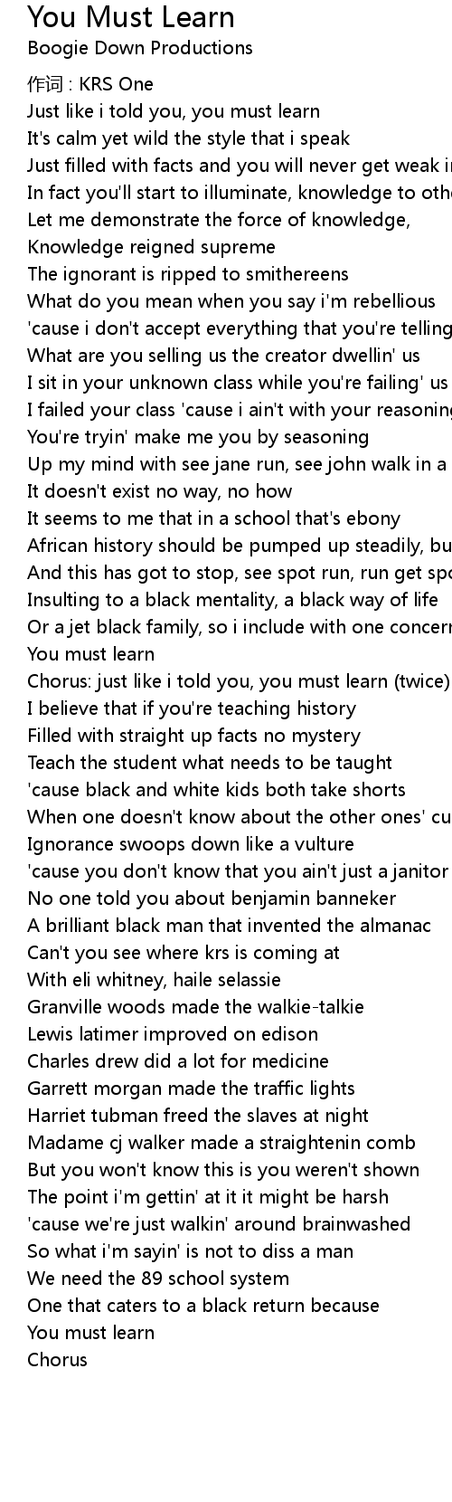 | Song | You Must Learn |