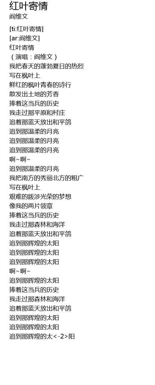 | [00:33.57] | 鲜红的枫叶青春的诗行 |