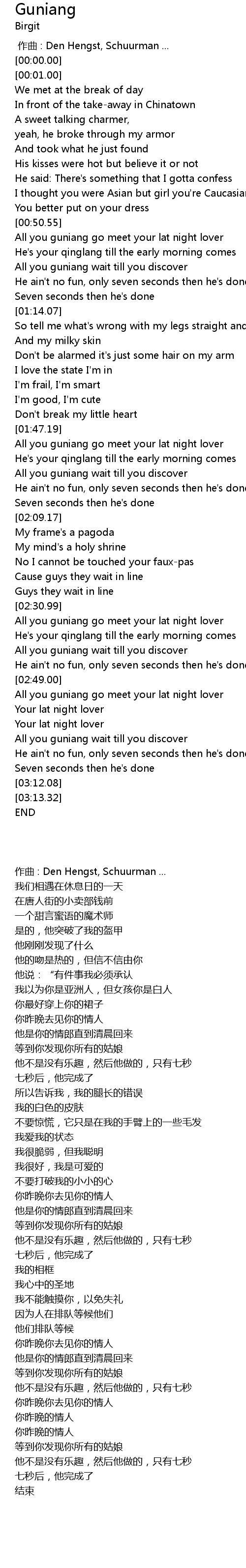| [00:51.92] | All you guniang go meet your lat night lover |