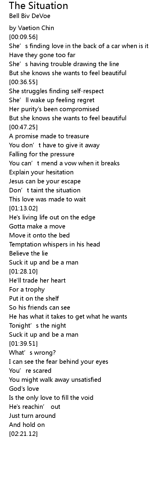 | [01:05.64] | Don' t taint the situation |