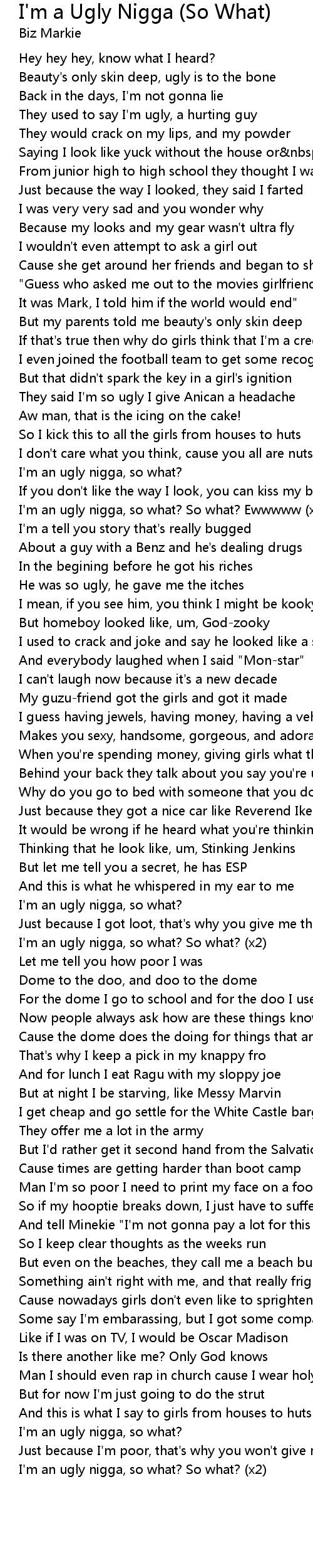 I'm an ugly nigga, so what? So what? Ewwwww (x2) |