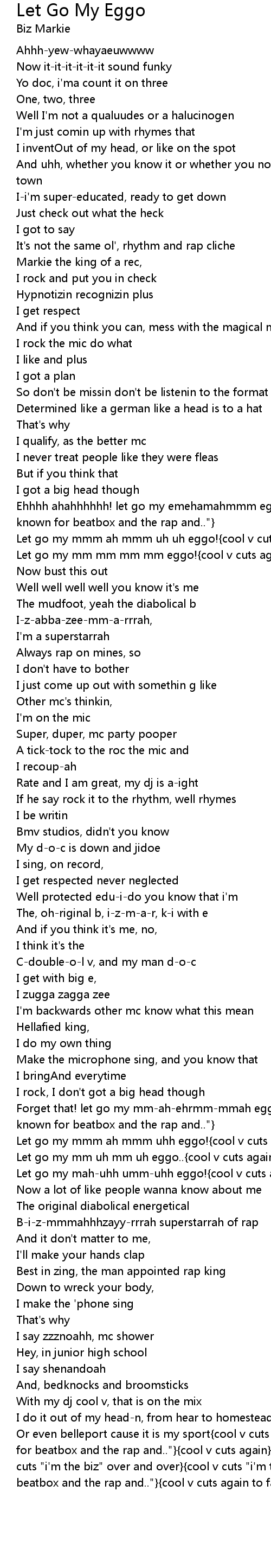Ehhhh ahahhhhhh! let go my emehamahmmm eggo{cool v cuts "i'm the bizmarkie, yo known for beatbox and the rap and.."} |