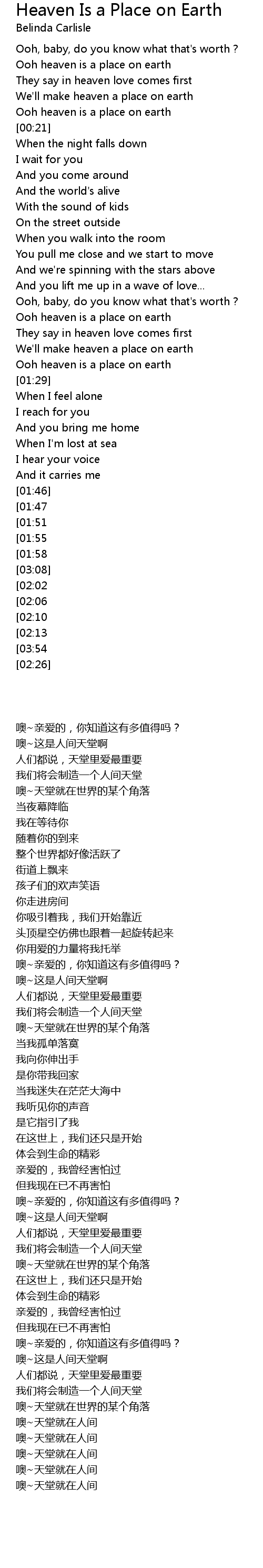 [03:57][03:54][03:49][03:45][03:42][03:38][02:17] Ooh heaven is a place on earth