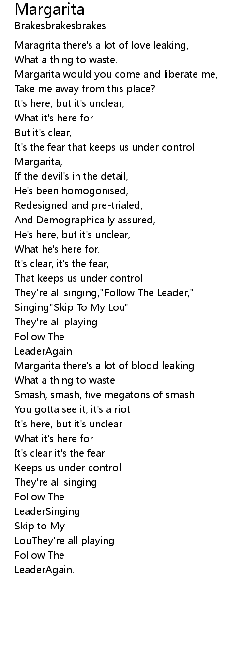 Margarita would you come and liberate me, |