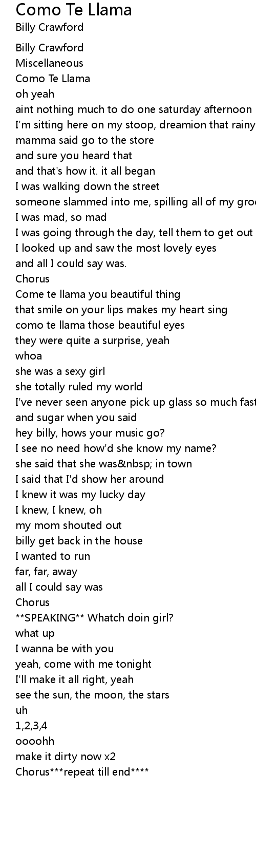 Como Te Llama Lyrics