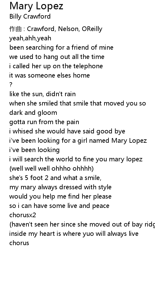 | i' ve been looking for a girl named Mary Lopez | |