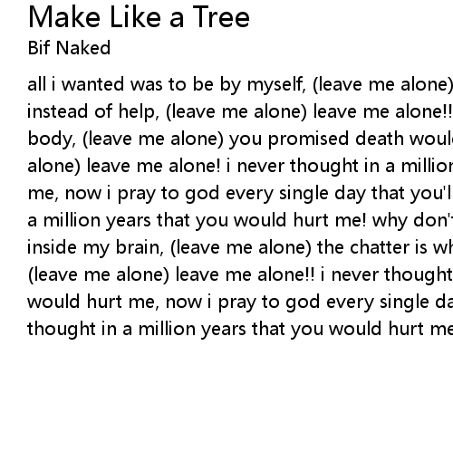 | all i wanted was to be by myself, leave me alone all you did was hurt me instead of help, leave me alone leave me alone!! as i touch myself my cold body, leave me alone you promised death would truly set me free leave me alone leave me alone! i never thought in a million years that you would hurt me, now i pray to god every single day that you' ll desert me, i never thought in a million years that you would hurt me! why don' t you go away?! stop the voices inside my brain, leave me alone the chatter is what finally drove me insane! leave me alone leave me alone!! i never thought in a million years that you would hurt me, now i pray to god every single day that you' ll desert me! i never thought in a million years that you would hurt me why don' t you go away?! |