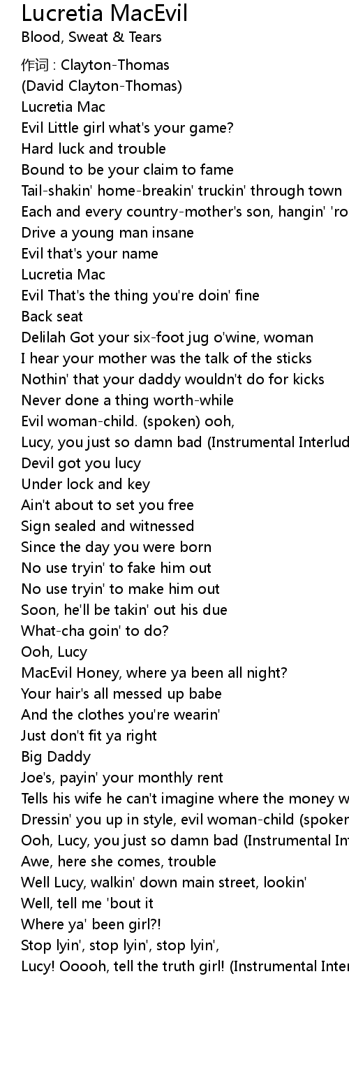 | Song | Lucretia MacEvil |