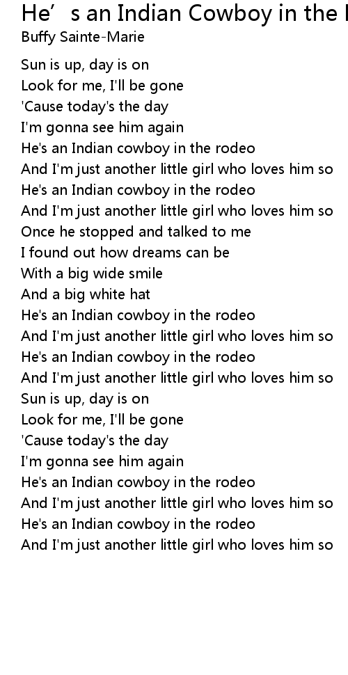 He’s an Indian Cowboy in the Rodeo He' s an Indian Cowboy in the Rodeo Lyrics