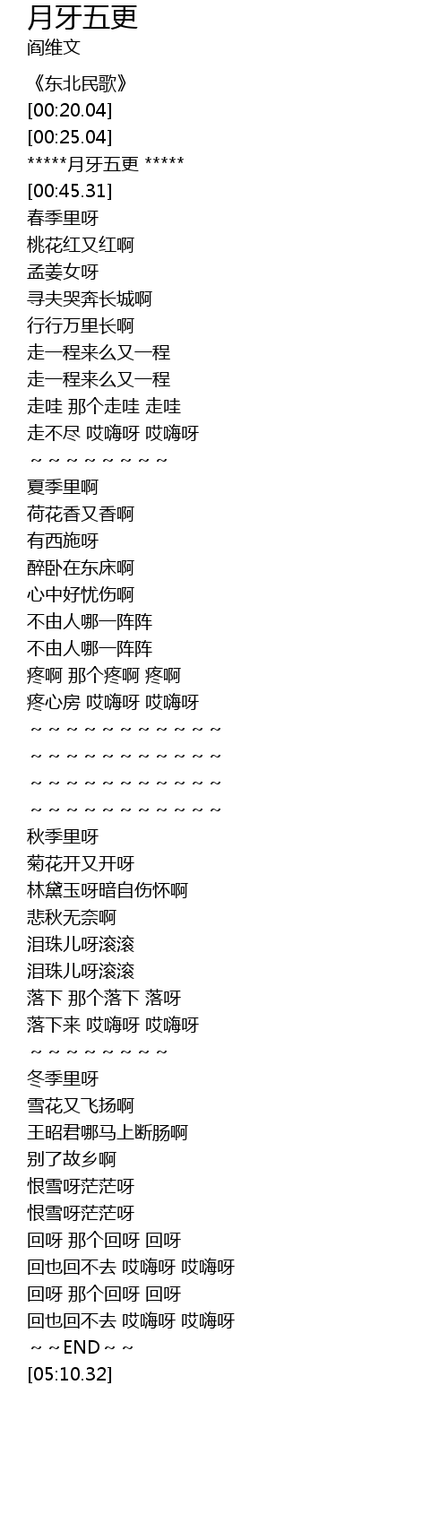 | [04:42.67] | 回呀 那个回呀 回呀 |