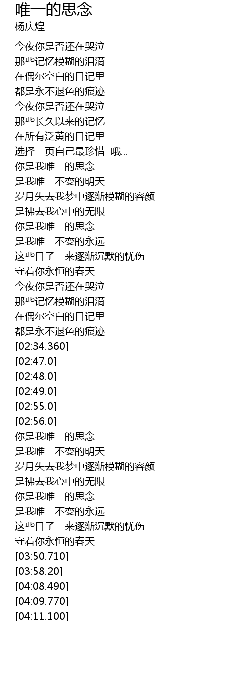 | [02:59.220] | 你是我唯一的思念 |