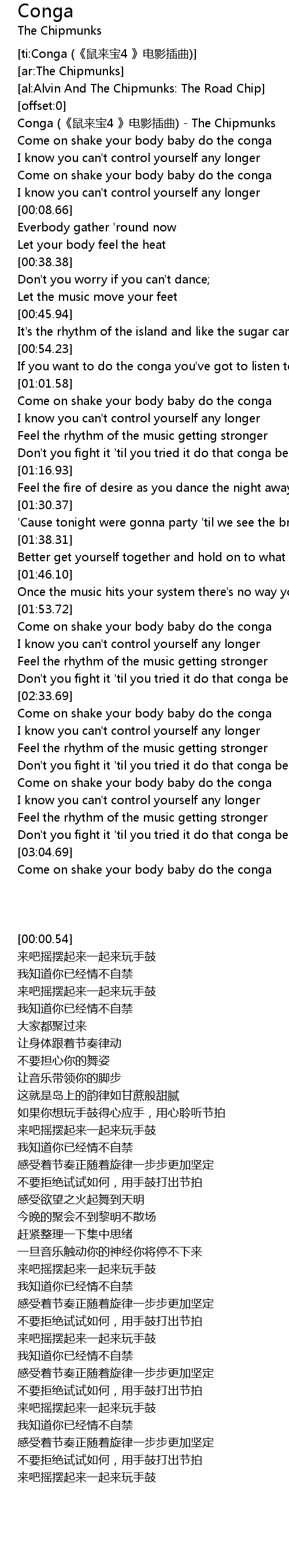 | [00:00.54] | Conga (《鼠来宝4 》电影插曲) - The Chipmunks |