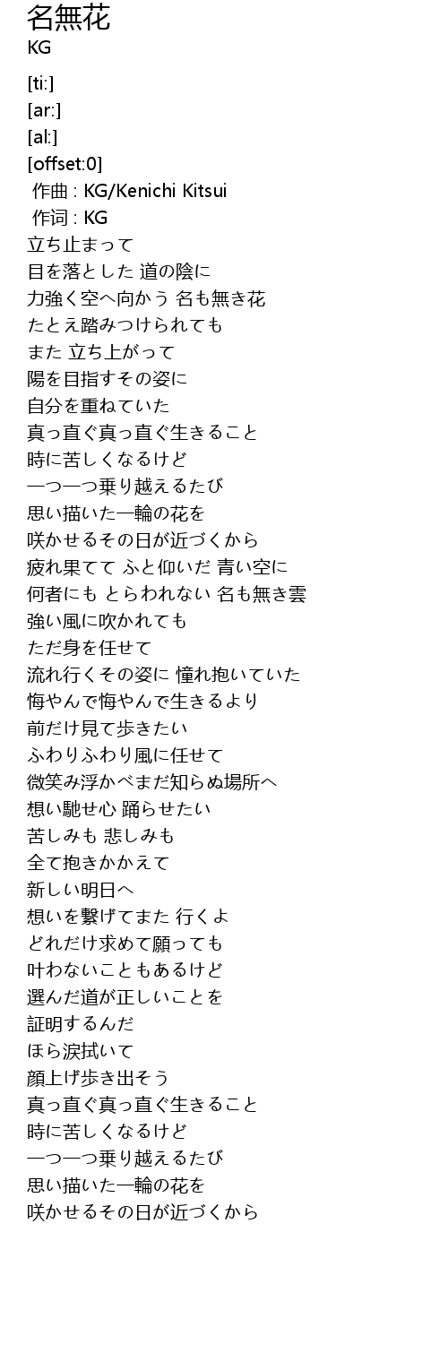 | [00:29.68] | 力強く空へ向かう 名も無き花 |