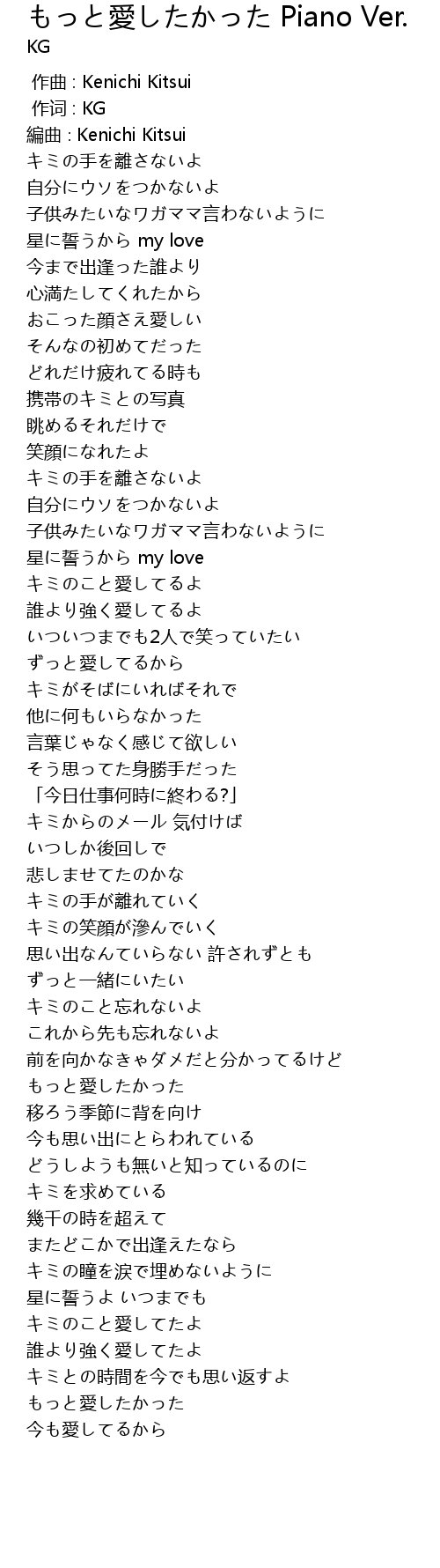 | Song | もっと愛したかった Piano Ver. |