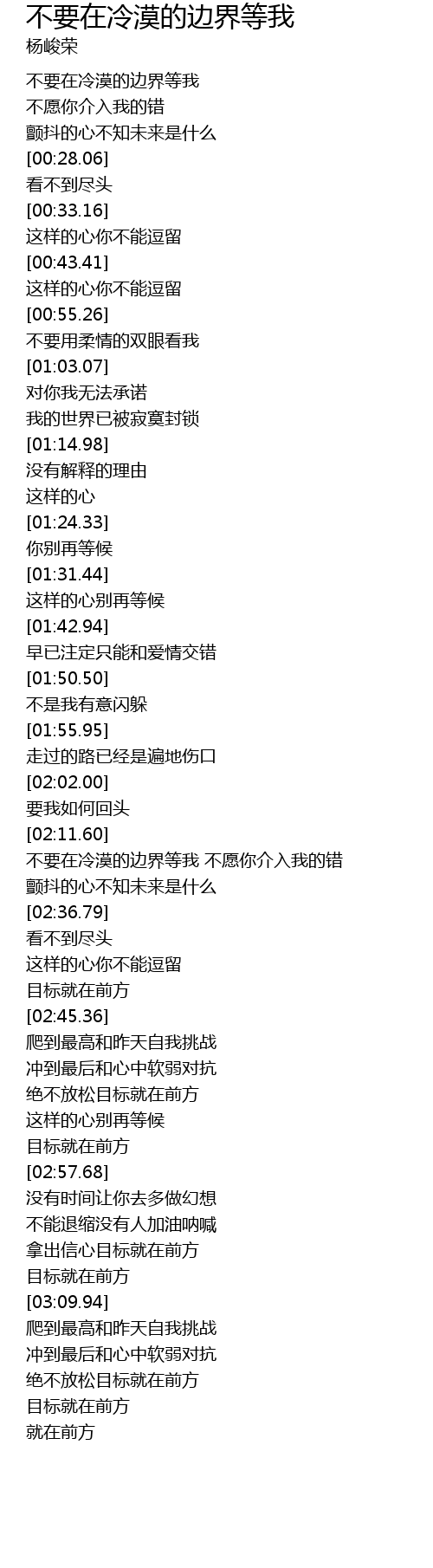 | [00:11.09] | 不要在冷漠的边界等我 |