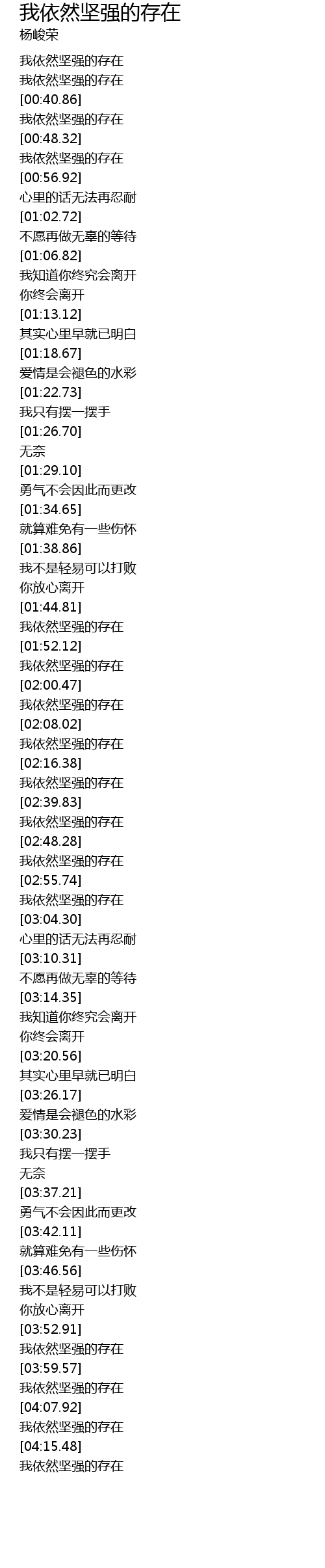 | [04:10.82] | wǒ yī rán jiān qiáng de cún zài |