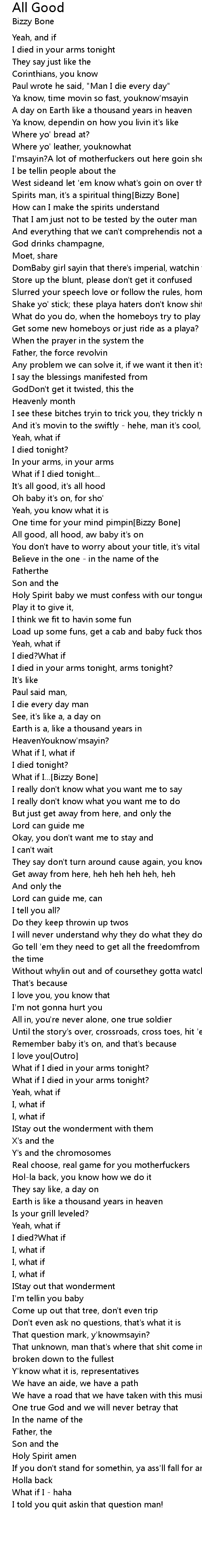 Spirits man, it's a spiritual thing[Bizzy Bone] |