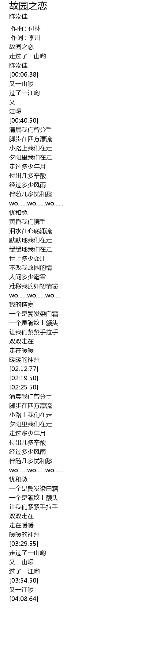 | [01:37.88] | bù gǎi wǒ gù yuán de qíng |