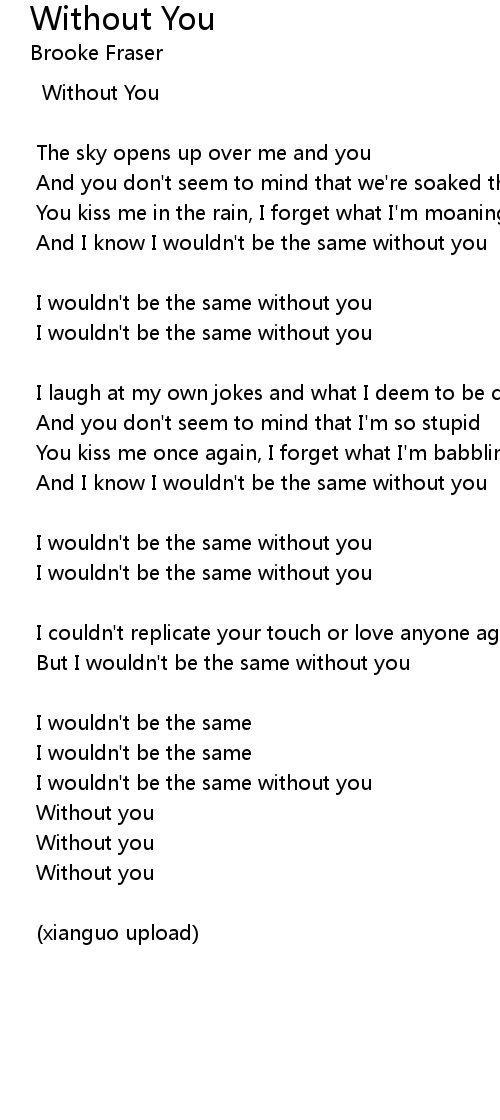 But I wouldn't be the same without you |