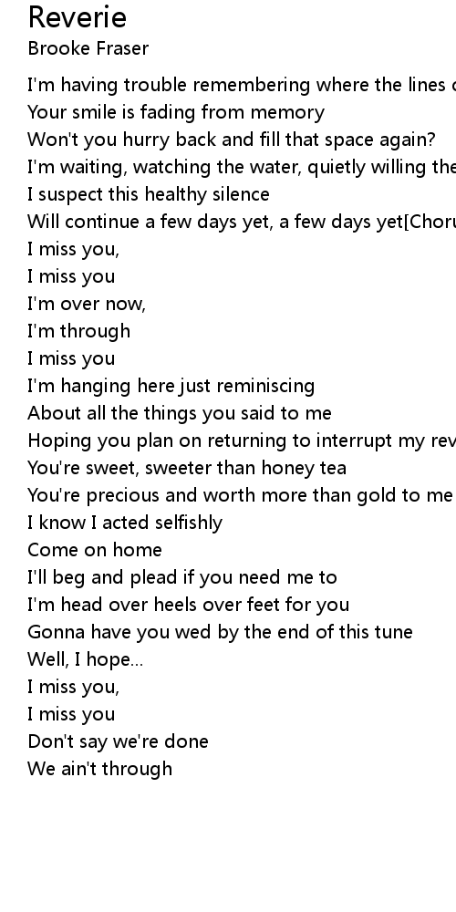 Hoping you plan on returning to interrupt my reverie[Chorus] |