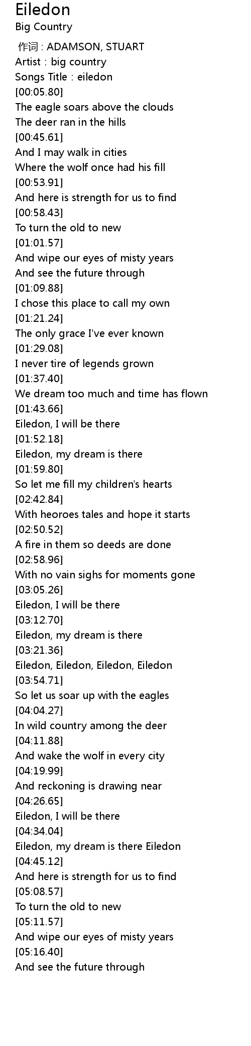 | [03:39.99] | Eiledon, Eiledon, Eiledon, Eiledon |