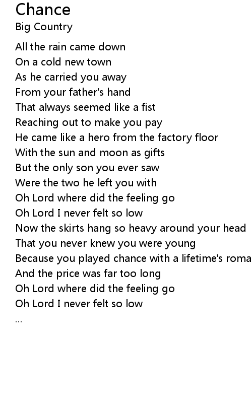 Because you played chance with a lifetime's romance |