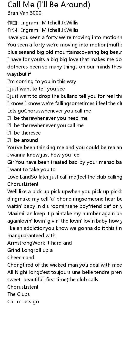 | Song | Call Me (I'll Be Around) |