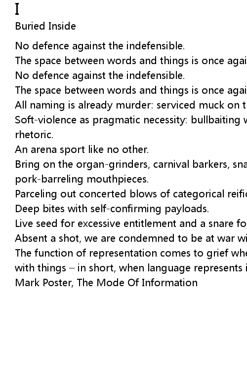 | The function of representation comes to grief when words lose their connections with things – in short, when language represents itself. | |