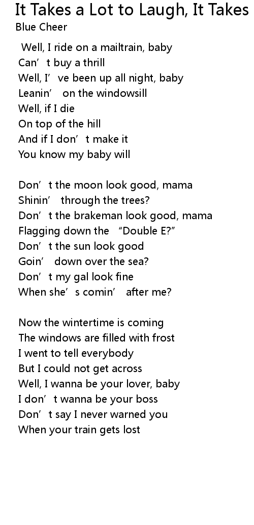 | Song | It Takes a Lot to Laugh, It Takes a Train to Cry |