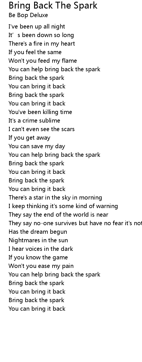 | Bring back the spark | |