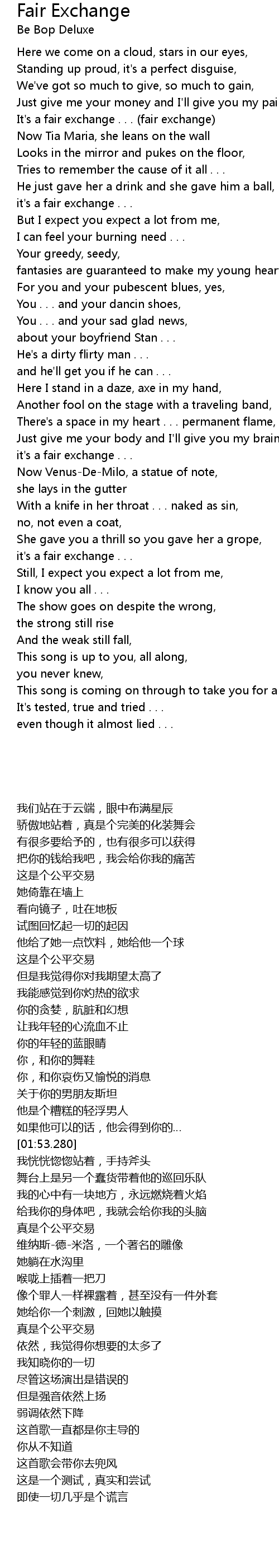 It's a fair exchange . . . (fair exchange) |