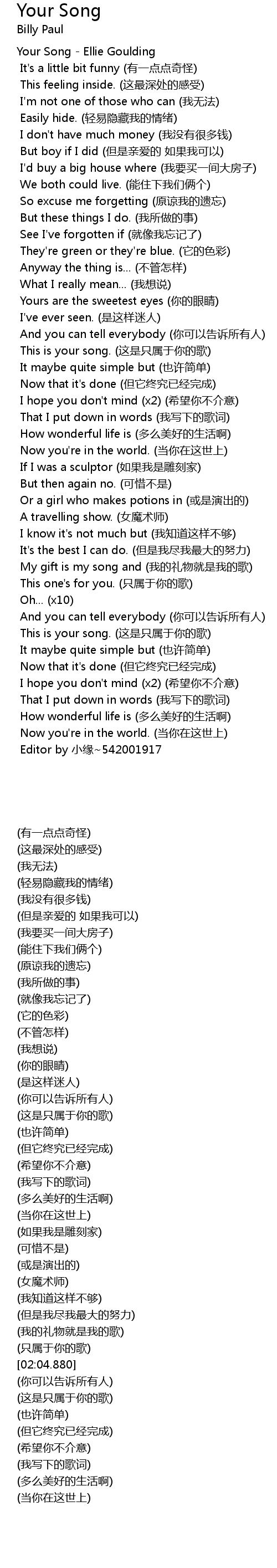 | This is your song. zhe shi zhi shu yu ni de ge | |
