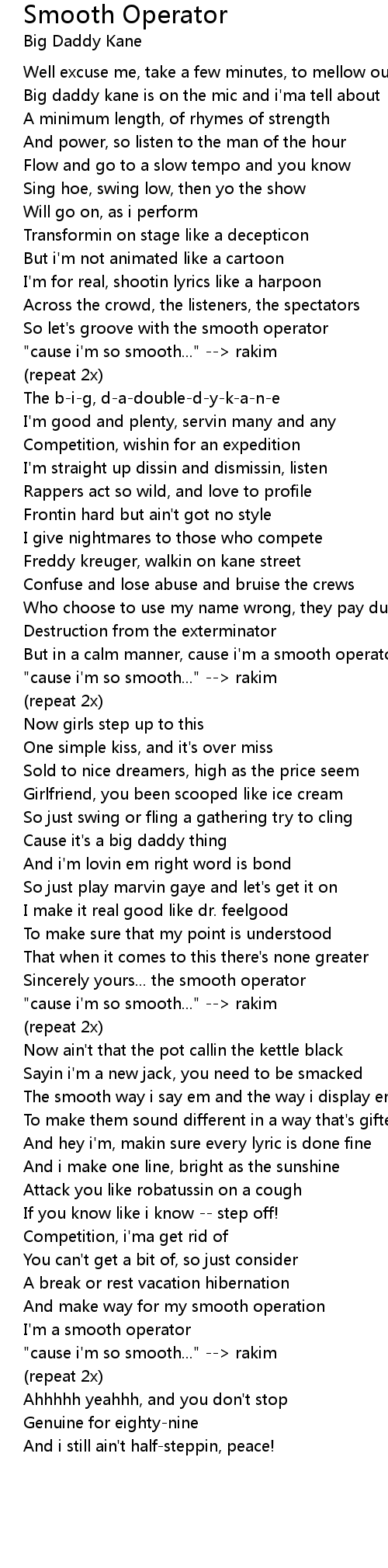 "cause i'm so smooth..." --> rakim |