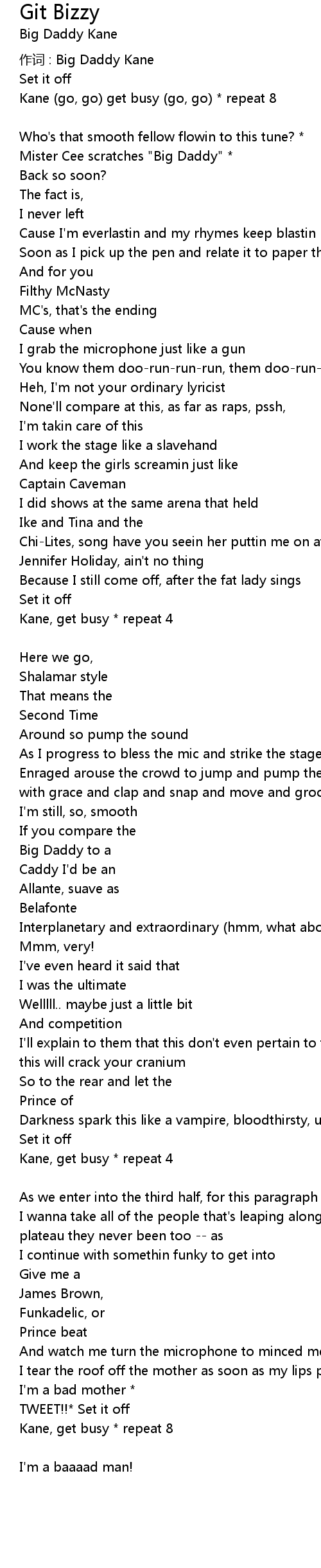 | Kane (go, go) get busy (go, go) * repeat 8 | |