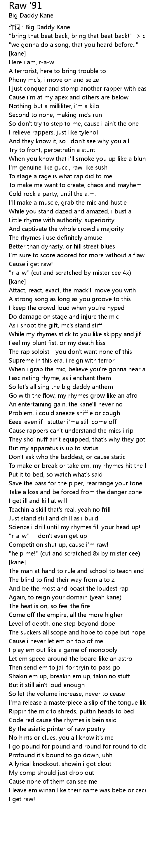 | 作词 : Big Daddy Kane | |