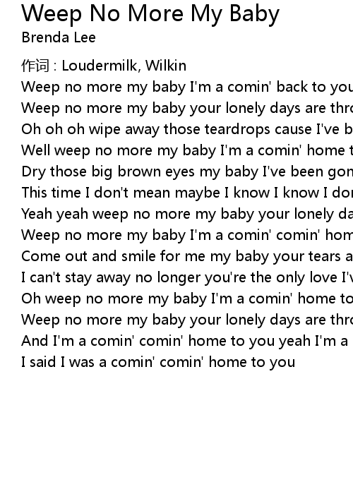 | Yeah yeah weep no more my baby your lonely days're through | |