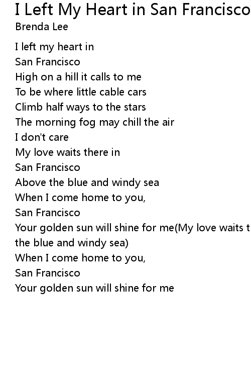 | Your golden sun will shine for me(My love waits there in San Francisco)(Above the blue and windy sea) | |