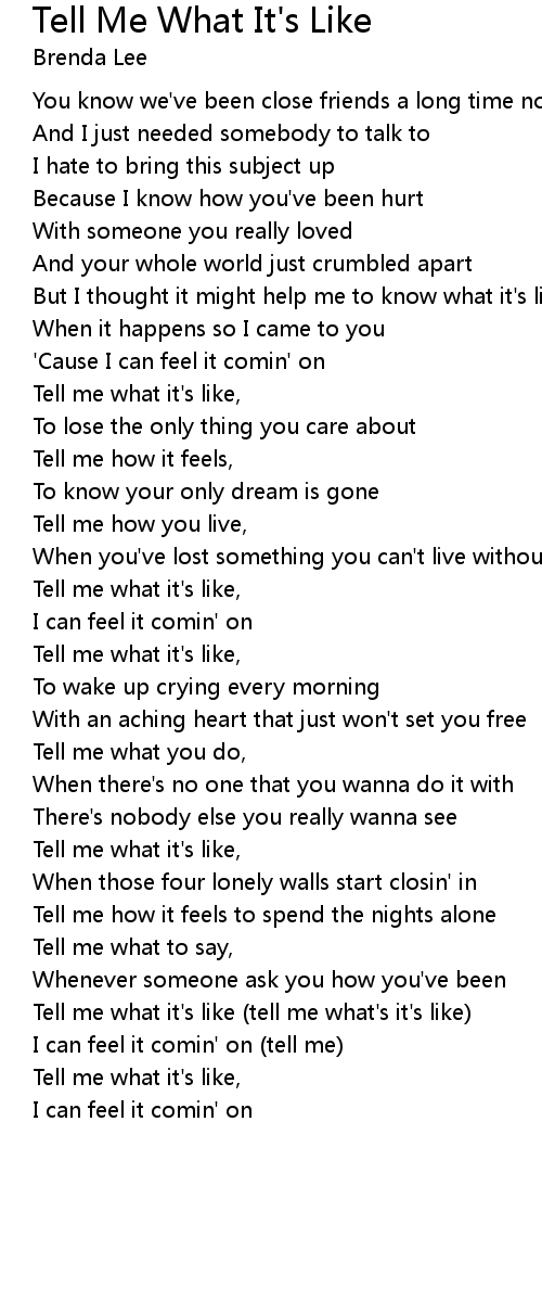 Tell me what it's like (tell me what's it's like) |