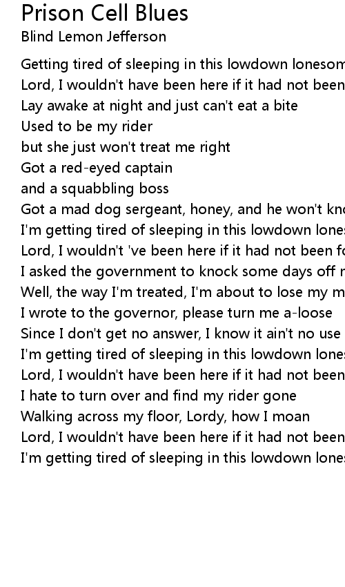 I'm getting tired of sleeping in this lowdown lonesome cell |
