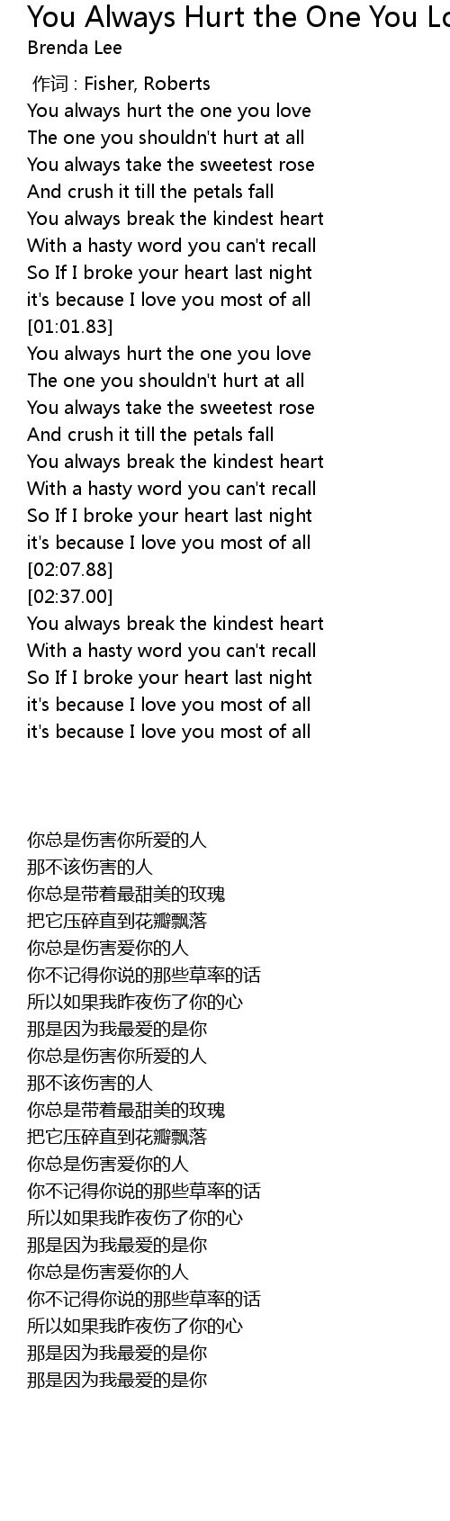 | [00:13.29] | The one you shouldn' t hurt at all |