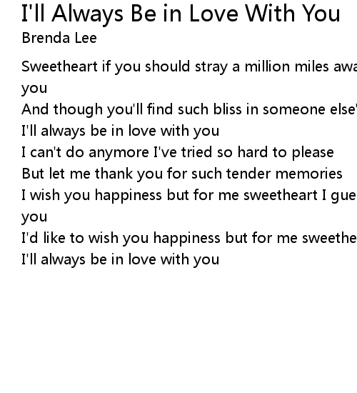 | Sweetheart if you should stray a million miles away I'll always be in love with you | |
