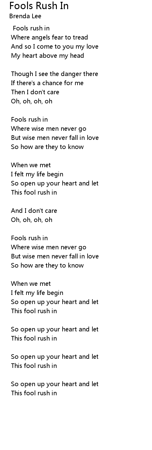 Fools rush in |