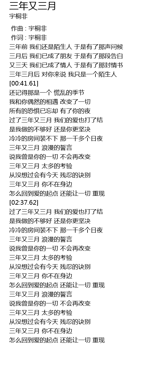 | [00:34.18] | 三年三月后 对你来说 我只是一个陌生人 |