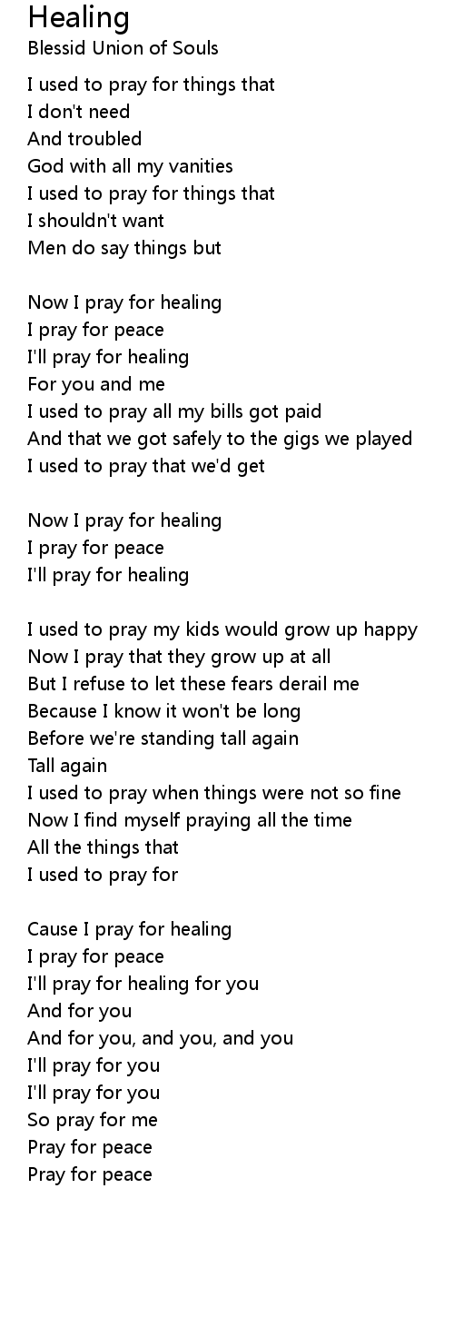 Now I pray for healing |