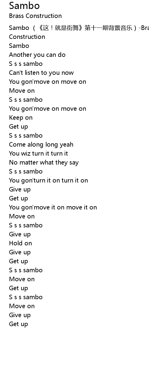 | [00:00.00] | Sambo (《这!就是街舞》第十一期背景音乐)-Brass Construction |