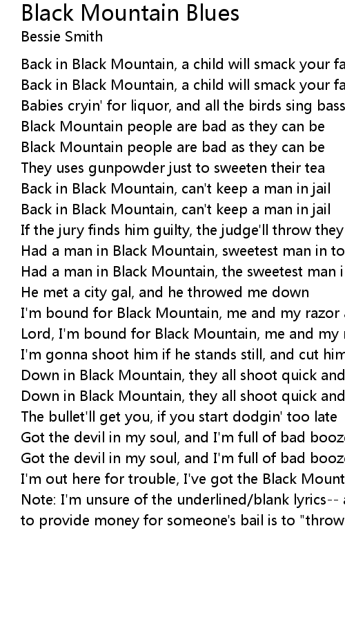Lord, I'm bound for Black Mountain, me and my razor and gun