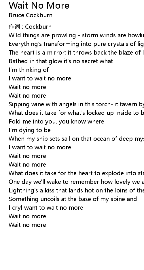 | I want to wait no more | |