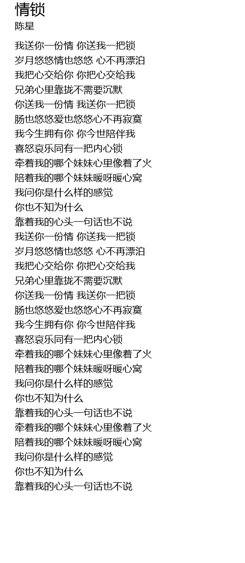 | [00:50.090] | 你送我一份情 我送你一把锁 |